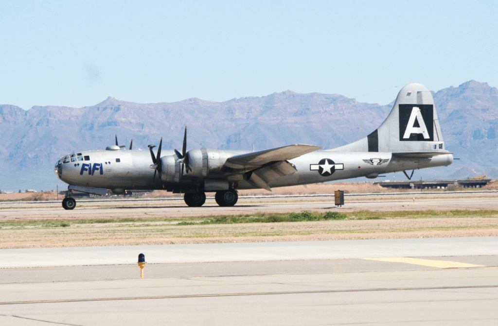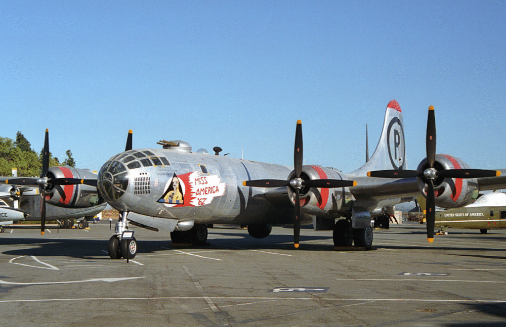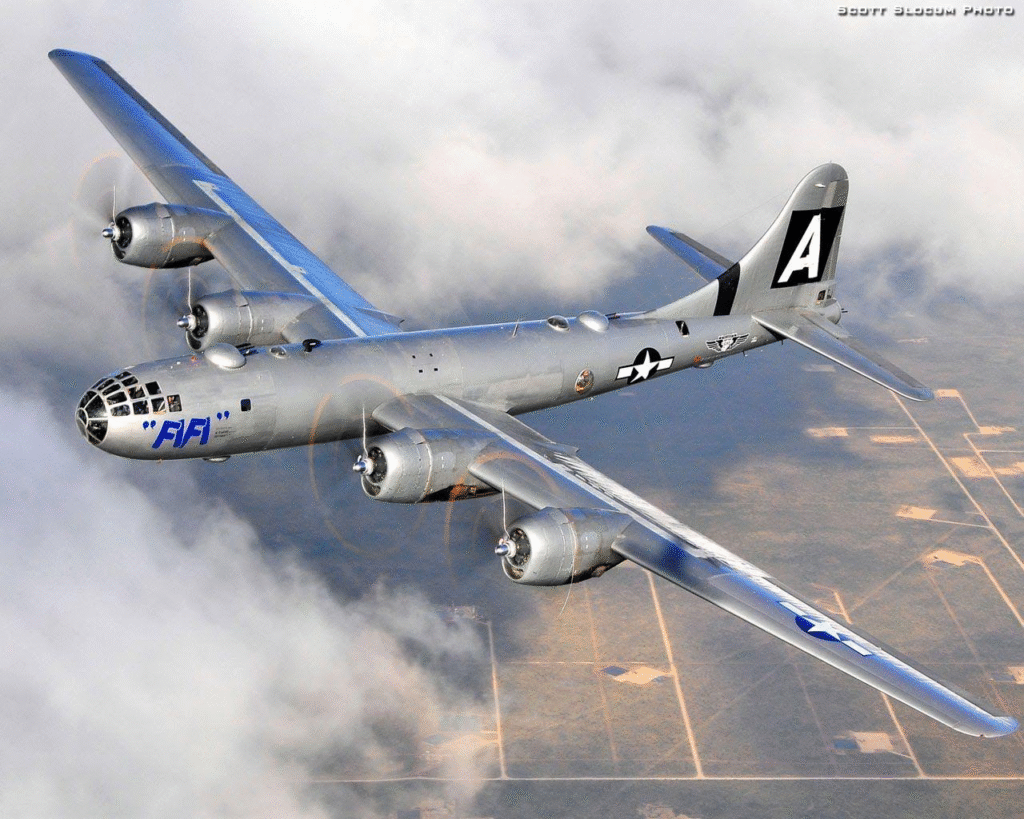 The B-29 occupies a peculiar and contentious position in the history books as the sole aircraft to deploy nuclear bombs in warfare. On August 6, 1945, the Enola Gay released “Little Boy” on Hiroshima, and three days later, Bockscar released “Fat Man” over Nagasaki. Both aircraft were modified specifically to accommodate these enormous payloads, with turrets stripped and strengthened bomb bays. These missions not only brought the war to a close but also opened the nuclear era.