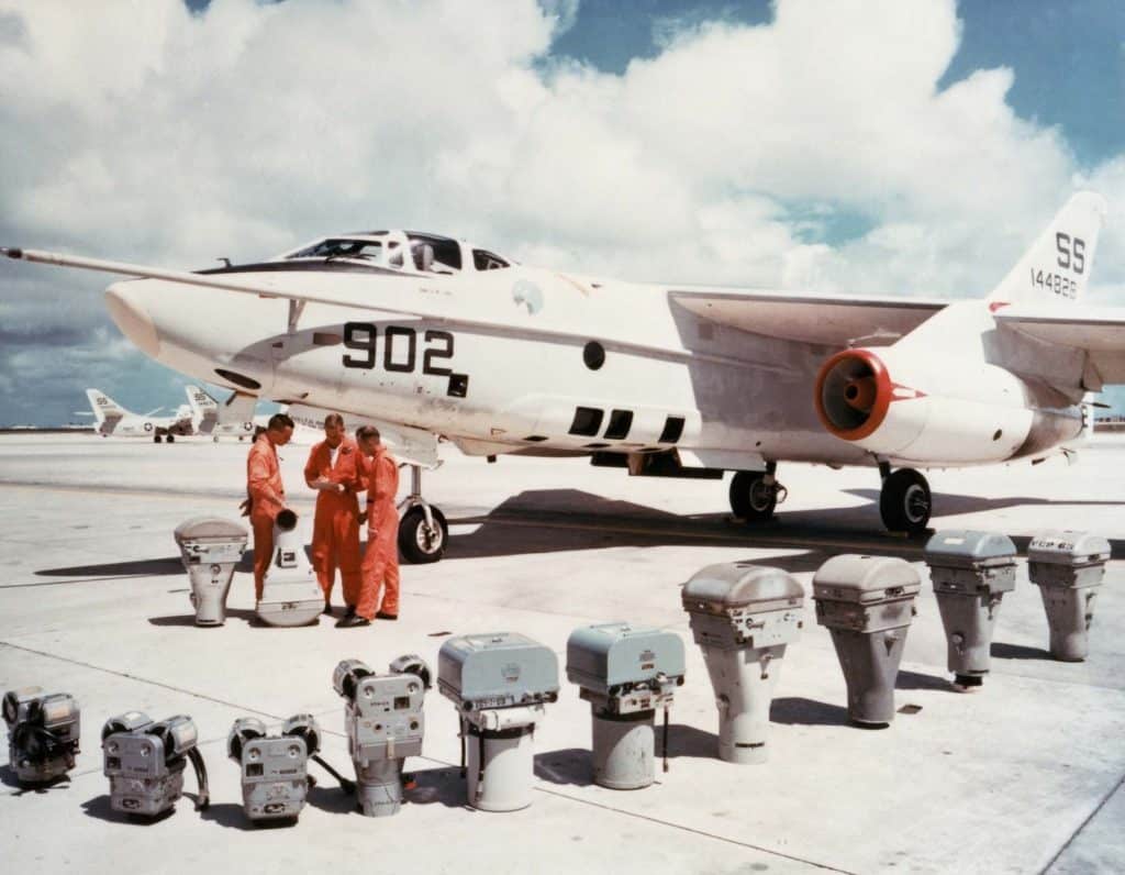 The EA-3B was equipped with various intelligence-gathering instruments and used for the covert monitoring of enemy radar and communication lines. This function was very important during the Cold War and the time in Vietnam. The RA-3B, by the way, had cameras and sensors that enabled the mapping and photographing of the opponent’s land from the air.