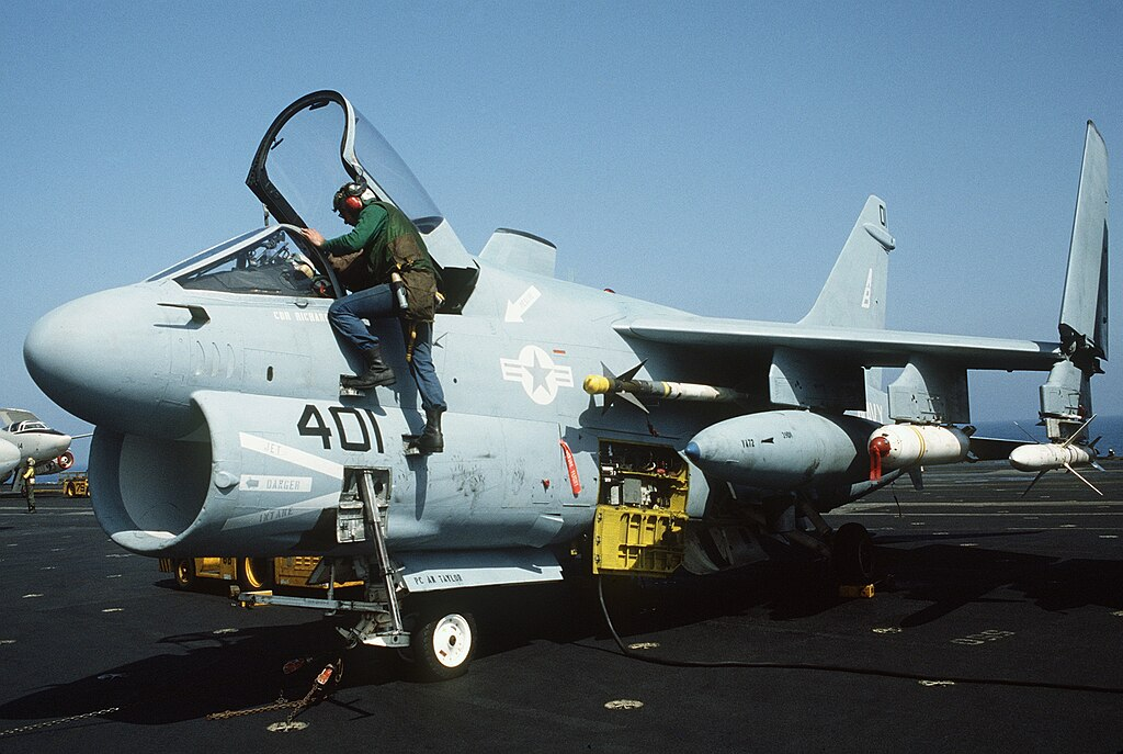 Subsequently, the Corsair II was always present in geographical areas with the most violent confrontations and in major world crises after Vietnam, such as Cambodia, Lebanon, and Grenada, Libya, or the Persian Gulf. However, at the time of Operation Desert Storm, in 1991, only a few Navy squadrons still existed and were equipped with A-7, but they turned out to be very helpful in the beginning of the attack to free Kuwait.