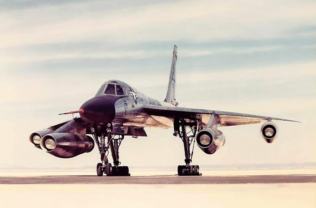 Besides four General Electric J79 turbojets that enabled the aircraft to keep its flight at supersonic speed, the sharply swept wings and the needle-like fuselage made it quite understandable why one would take it for a spacecraft rather than a bomber. Without honeycomb sandwich panels—an upgraded material for that period—the airframe would not have been able to endure the heat generated by the friction at Mach 2 speeds.