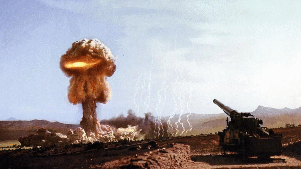 The real test of Atomic Annie occurred on May 25, 1953, at the Nevada Test Site during Operation Upshot-Knothole, a set of nuclear tests aimed at assessing new weapons and tactics. The artillery shell, which was referred to as “Shot Grable,” was the only nuclear detonation ever discharged from a cannon. The Army personnel from Fort Sill, Oklahoma, loaded an 11-inch, 800-pound W9 nuclear shell into Annie’s barrel. At 8:30 a.m., the gun boomed into action, propelling the shell on a flight of 19 seconds before it burst in an airburst about six miles out, having a yield of 15 kilotons—similar to the one that had been dropped over Hiroshima.