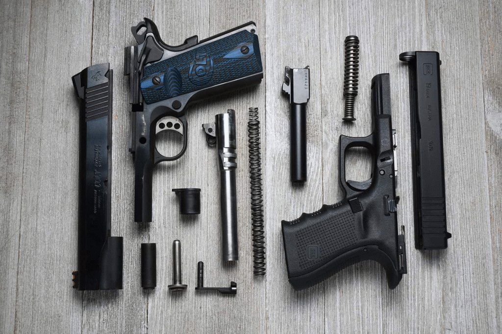 Ergonomics is also a matter of personal preference. The 1911’s grip angle and skinniness are typically lauded for how naturally it points. Its single-stack magazine keeps it comfortable even for smaller-handed shooters. On the other hand, Glock’s modular system facilitates interchangeable backstraps, great aftermarket customization, and an adjustability that accommodates a broad variety of shooters. Maintenance is another line that divides: the 1911 needs meticulous field stripping and careful cleaning, whereas a Glock can be quickly field stripped in seconds and cleaned with little effort.