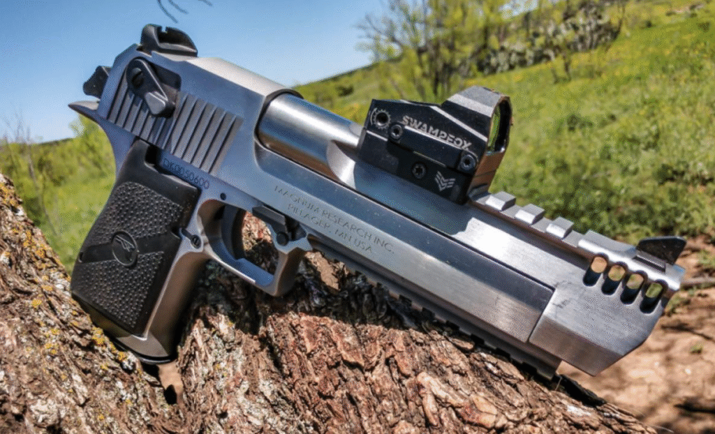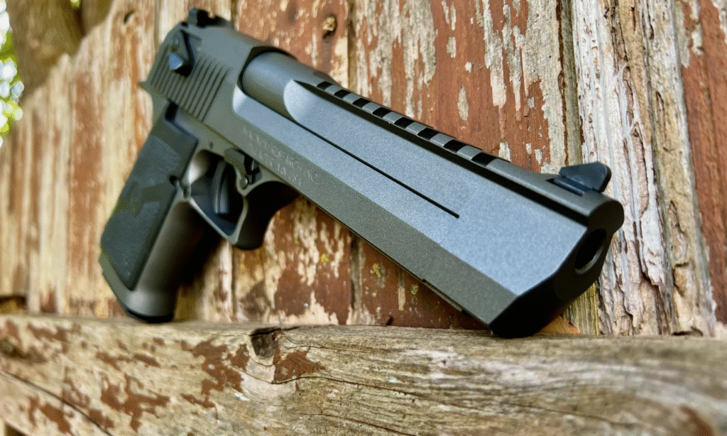It stands out from the rest in its design. Instead of using the recoil-operated system most handguns use, the Desert Eagle utilizes rifle technology in its rotating bolt and gas operation. That design gives it a power and accuracy level that many other pistols are not capable of, and that is why collectors and enthusiasts love it.