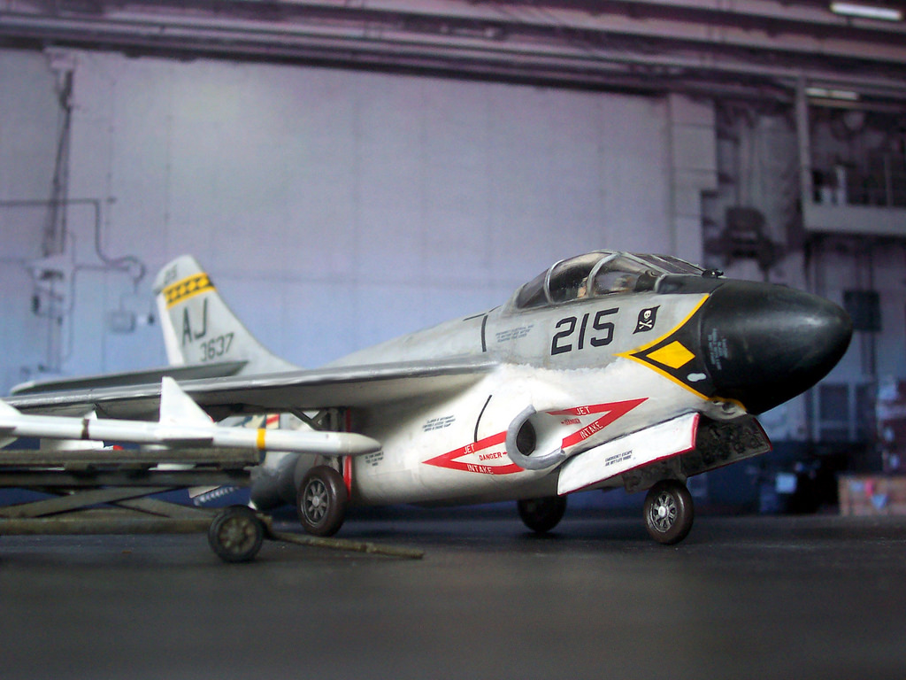 The F3D saw its first combat experience during the Korean War. Used in 1951 with Marine Night Fighter Squadron 513, the “Flying Nightmares,” the Skyknight was charged with defending USAF B-29 bombers on nighttime bombing runs over North Korea.