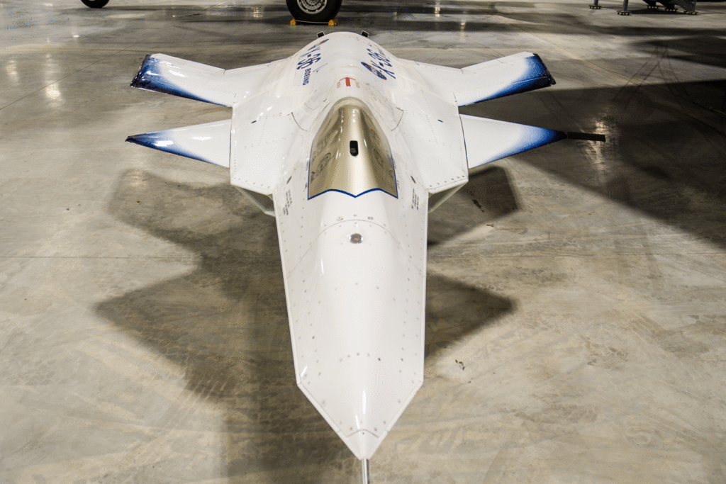 The X-36’s DNA carries over in the F-47, being developed for the Air Force’s upcoming air dominance program. The plane is designed with a wide, tailless fuselage and forward canards, with stealth, agility, and sophisticated systems integration.
