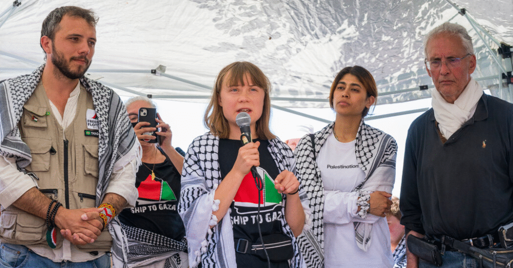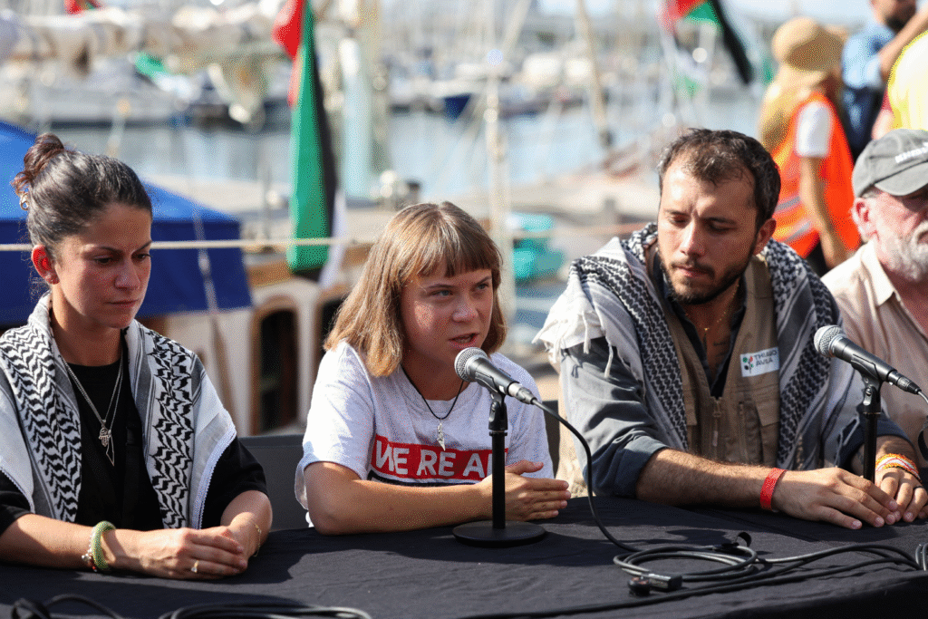 The Flotilla was organized by the Freedom Flotilla Coalition, an organization with a history of organizing sea and land convoys to Gaza. This particular journey constituted the Global Sumud Flotilla, a designation used by its facilitators to describe the largest ever civilian flotilla assembled. 44 nations had representatives and more than 50 ships participated, all intent on bringing visibility to Gaza’s humanitarian need crisis. The Madleen, a yacht flying the British flag, departed Sicily on June 1, 2025, carrying a symbolic cargo of food, baby formula, and medicine. On board were Thunberg, French Member of Parliament Rima Hassan, and Brazilian activist Thiago Ávila.