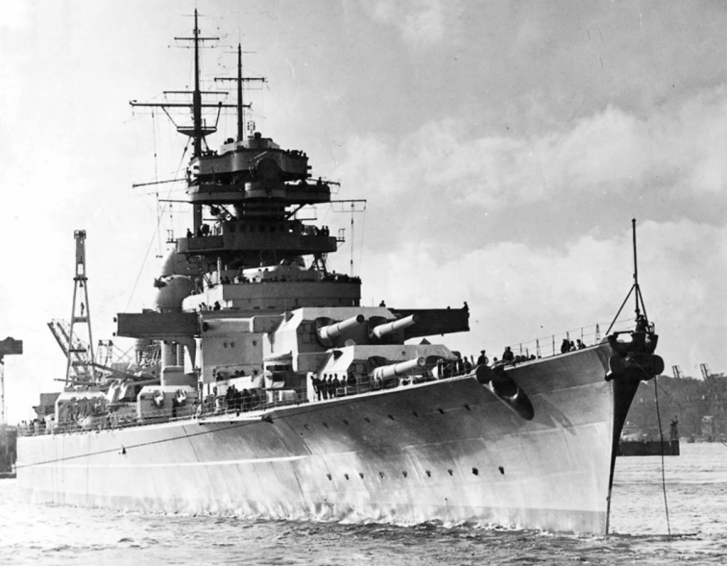One of the few naval tales to capture the imagination is that of the Bismarck. In February 1939, this German battleship was not merely steel and guns but also a symbol of ambition, innovation, and naval power. Weighing over 50,000 tons when fully loaded, extending 251 meters, and featuring eight giant 15-inch guns, Bismarck was constructed to dominate the oceans. With a combination of thick armor and stunning speed, it was nearly impossible for any warship of that era to challenge it.