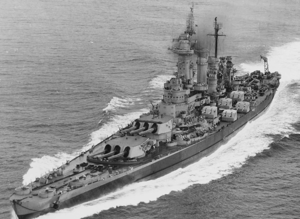 The USS Washington, one of the North Carolina class and commissioned in 1941, was the epitome of American naval engineering during that period. Constructed to the limits imposed by the Washington Naval Treaty, she was an even blend of heavy firepower, heavy armor, and good speed. Measuring 728 feet long and displacing over 44,000 tons when fully loaded, Washington was an imposing figure. Her primary armament consisted of nine 16-inch/45 caliber guns, each capable of launching tremendous 2,700-pound shells over long ranges.