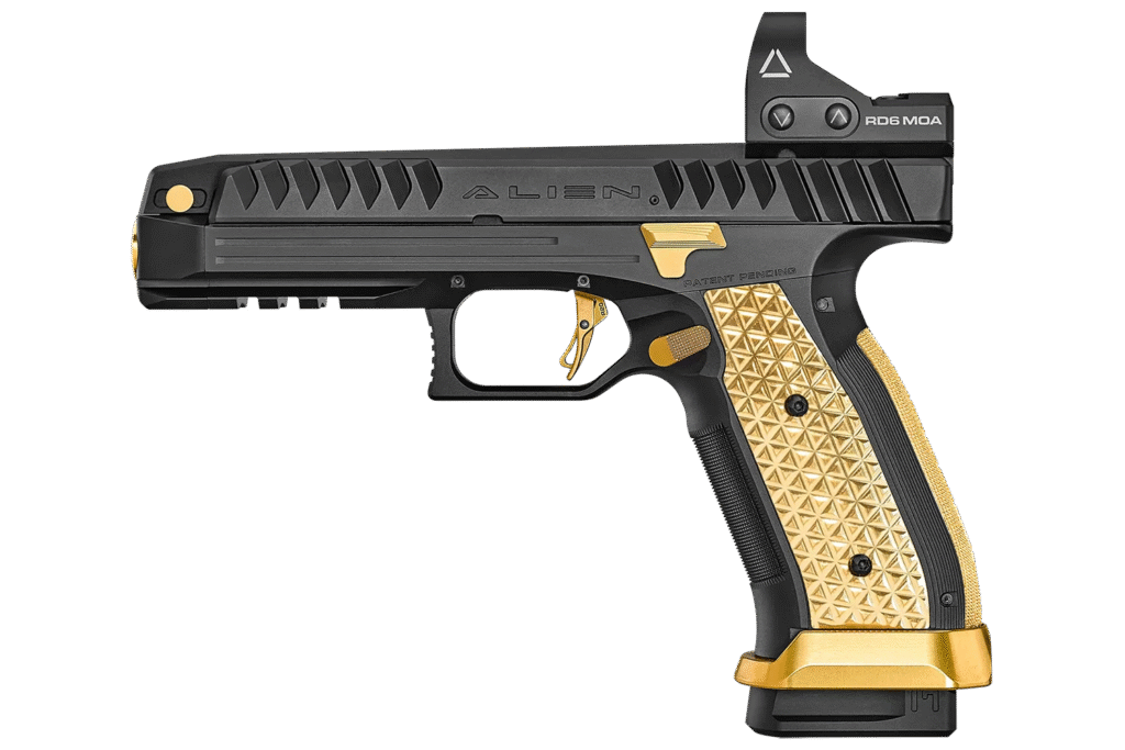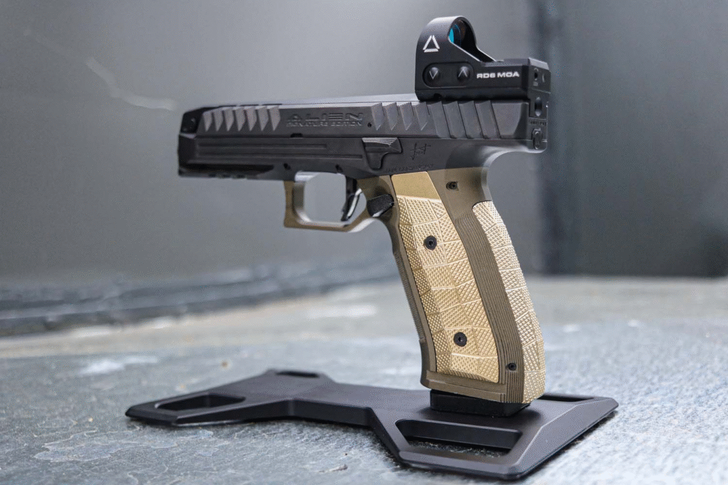 In an era of polymer-framed pistols and rehashed throwbacks, the Laugo Arms Alien doesn’t merely stand out—it entirely rewrites the rulebook. To a lot of shooters and gun experts, it’s not merely a pistol; it’s a daring experiment in what a handgun can do. With its rocket-age looks and capabilities to boot, the Alien has developed a reputation as one of the most innovative sidearms available, frequently likened to a Bugatti in the gun world for combining high-rev engineering, top-shelf performance, and streamlined aesthetics.