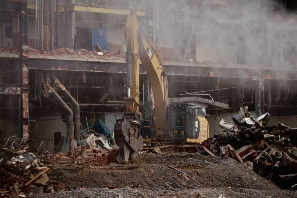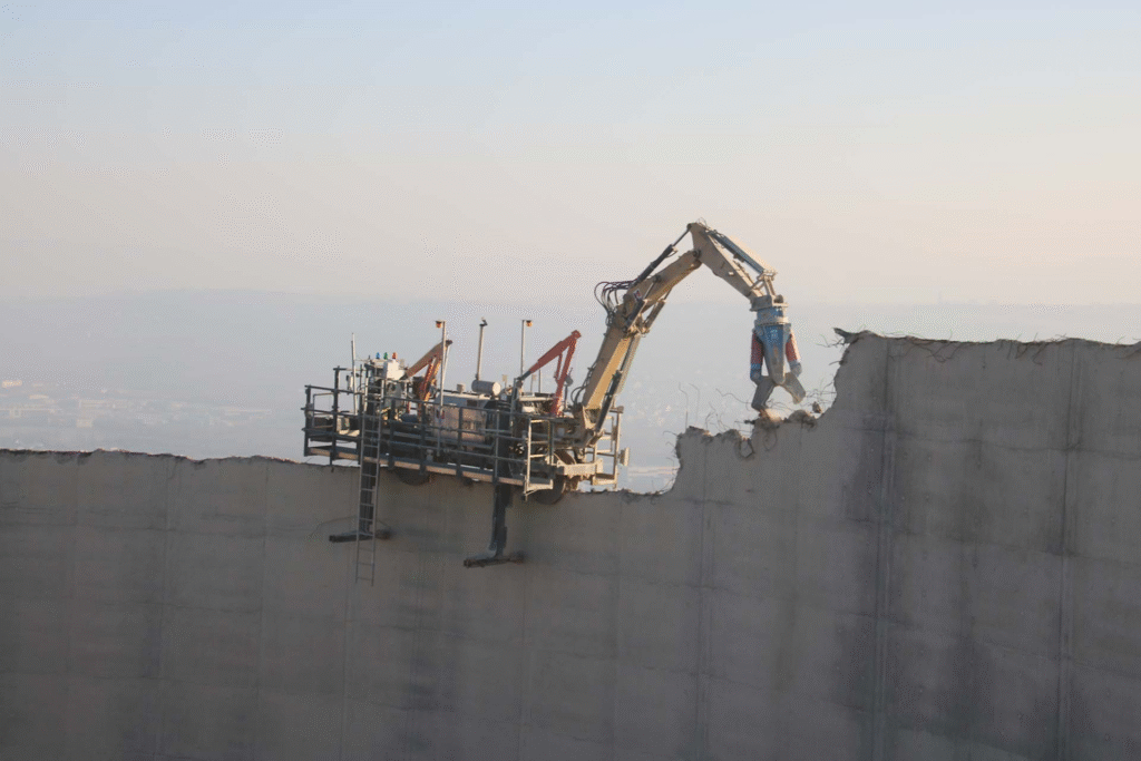 Technology is revolutionizing demolition from heavy-handed to fine art. Digitalization and remote-controlled equipment are making work smarter and safer. In one innovative method, an altered demolition excavator known as the RDB100 has sensors, wireless controls, and live data feeds. In Springer’s study on digitalization-based demolition, operators are able to control the machine remotely from a distance, seeing each motion in an interactive virtual setting powered by game engines such as Unity. LiDAR sensors sweep over the demolition line, point cloud algorithms strip away dust, and industrial PCs calculate the numbers—all to prevent the arm of the excavator from going haywire and the building collapsing precisely as intended.