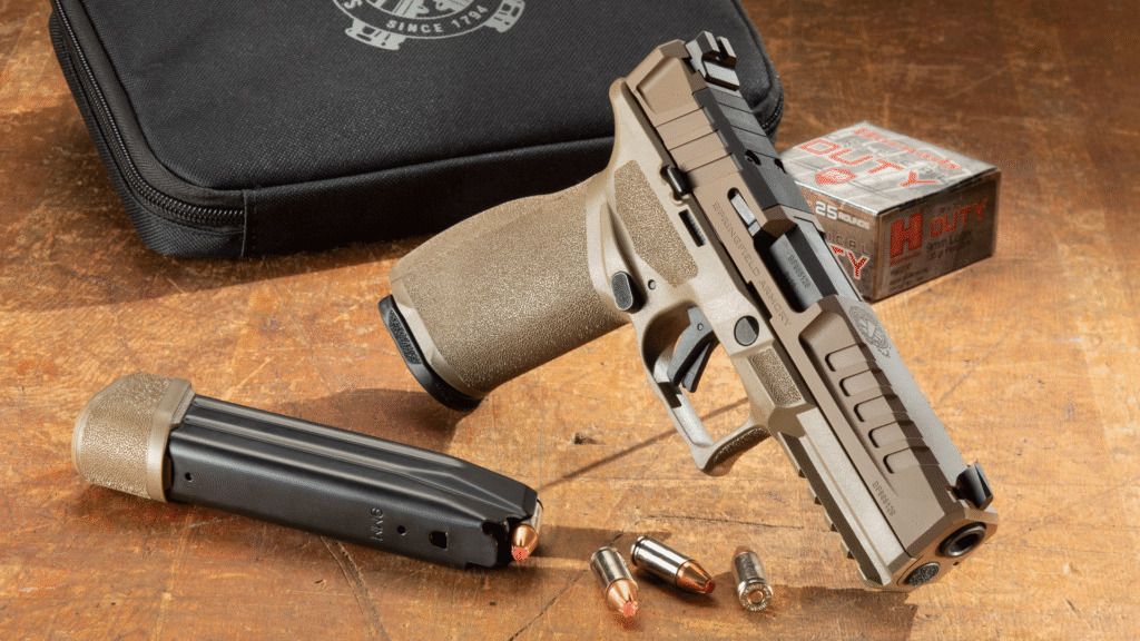 If you want a high-capacity pistol with perfect ergonomics and adaptability, the Springfield Echelon is the best. An optics-ready slide, interchangeable grip inserts, sharp control surfaces, and 17- and 20-round mags make it designed for defense. Accessory rails, a threaded barrel option, and quick setup give it an edge. You want fast hits, confident handling, and no frustration when it matters—that’s what this gun delivers.