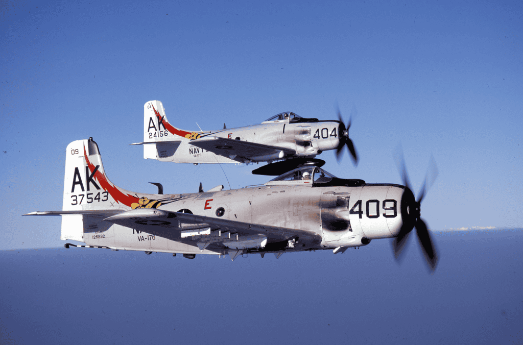 The Skyraider was initially tested during the Korean War. The Skyraider, which flew into the scene in 1950, was barely two days old before it was declared necessary for the Navy and Marine Corps. It was perfect for Korea’s rugged and hard-to-maneuver mountainous regions, terrain, and to fight the enemy forces. The Protoclips tactic, as it could fly low and slow.