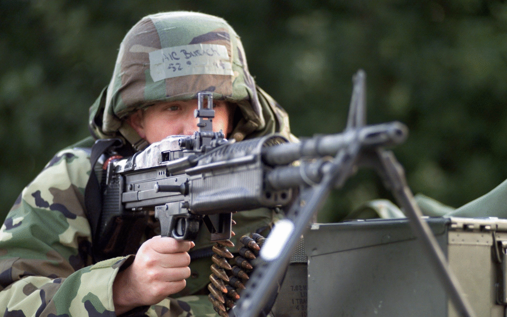Debuted in 1984, the M249 SAW put machine gun firepower into the hands of individual infantrymen without sacrificing its portability. Firing with the 5.56×45mm NATO cartridge, it enables troops to provide suppressive fire without sacrificing mobility. Its light weight and ruggedness have made it the standard from the Gulf War through recent conflicts and solidified it as a mainstay of American infantry warfare.