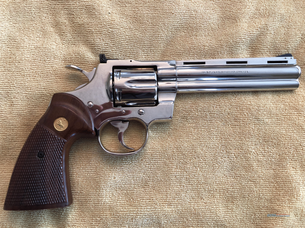 The Colt Python has been referred to as the “Rolls-Royce of revolvers.” Starting in the 1950s, it gained a reputation almost overnight for its nearly flawless trigger pull, exceptional finish, and accuracy that was unparalleled. Sport shooters and lawmen alike praised it for balance and feel. Quantities produced kept low and craftsmanship unrivaled, the Python is today the most sought-after revolver among serious collectors.
