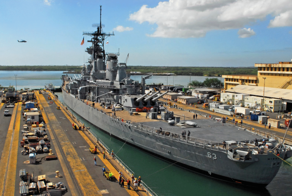 The USS Missouri (BB-63) is more than just another battleship in textbooks—it’s a monument to American resolve, creativity, and heritage afloat. Born out of the desperate times of World War II and constructed in the Brooklyn Navy Yard, the Missouri was the last of the Iowa-class battleships to be built. With her sleek 887-foot hull and powered by four engines producing a staggering 212,000 shaft horsepower, she was able to tear through the water at 33+ knots—faster than any U.S. battleship and even quicker than the most powerful Japanese capital ships of the time.