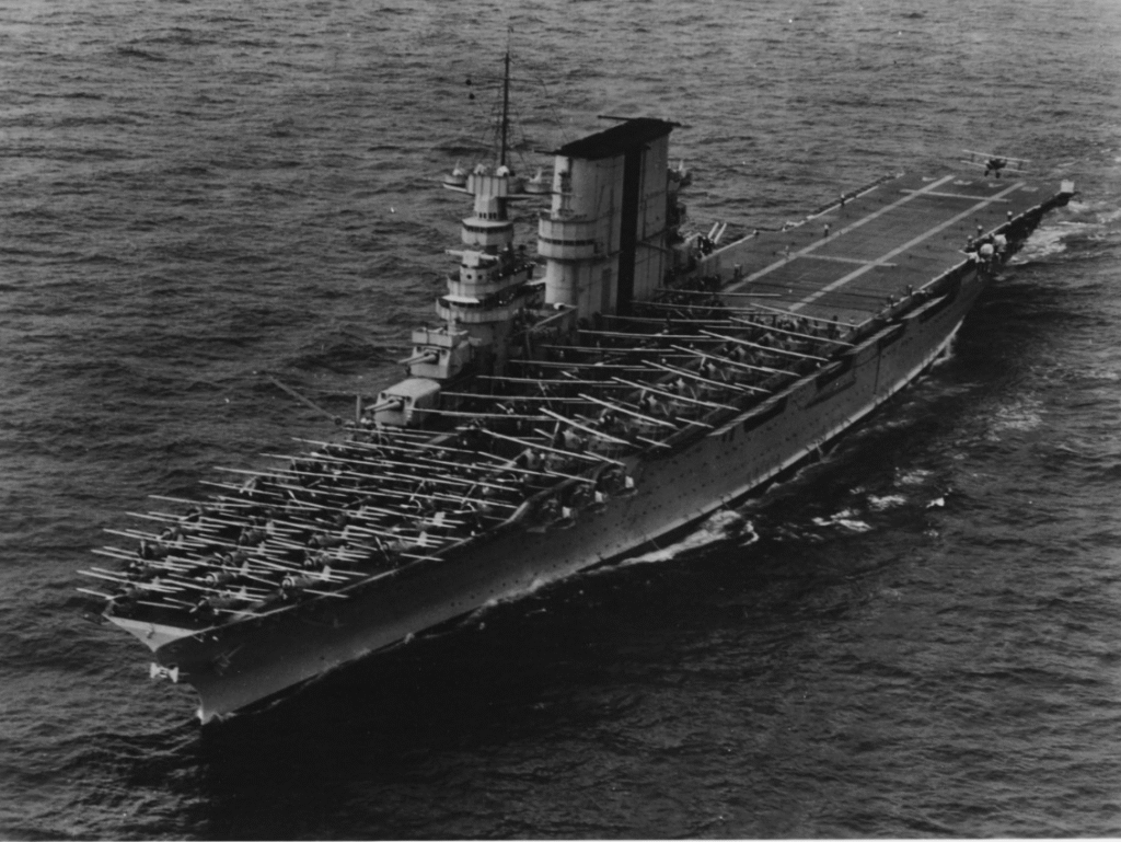 Commissioned in 1927, the Saratoga soon developed a reputation for being hardy and adaptable. She was larger than many of her counterparts, with the ability to launch and recover planes quickly and perform several operational functions. Even though she was torpedoed and had lived through kamikaze attacks, she kept coming back to fight again. Throughout such key campaigns as Guadalcanal, her air groups were instrumental in halting Japanese gains. Saratoga’s fortitude and flexibility had a lasting impact on U.S. Navy carrier tactics and influenced generations of pilots.